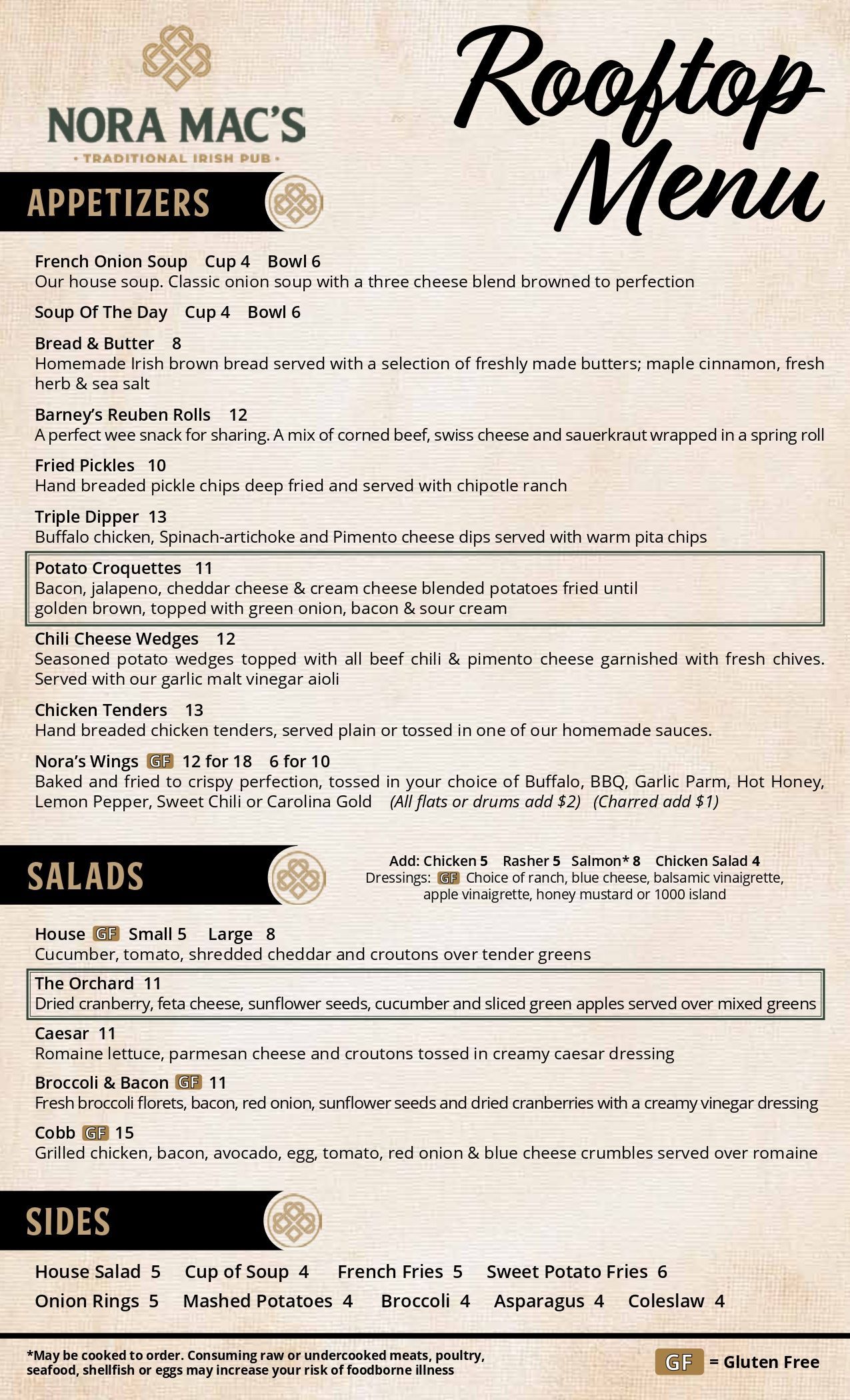 Rooftop Menu